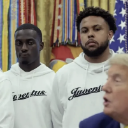 “太棒了,愿你们好运,”特朗普一边说一边握住他们的手。“我希望你们会成为场上的最佳两名球员。”